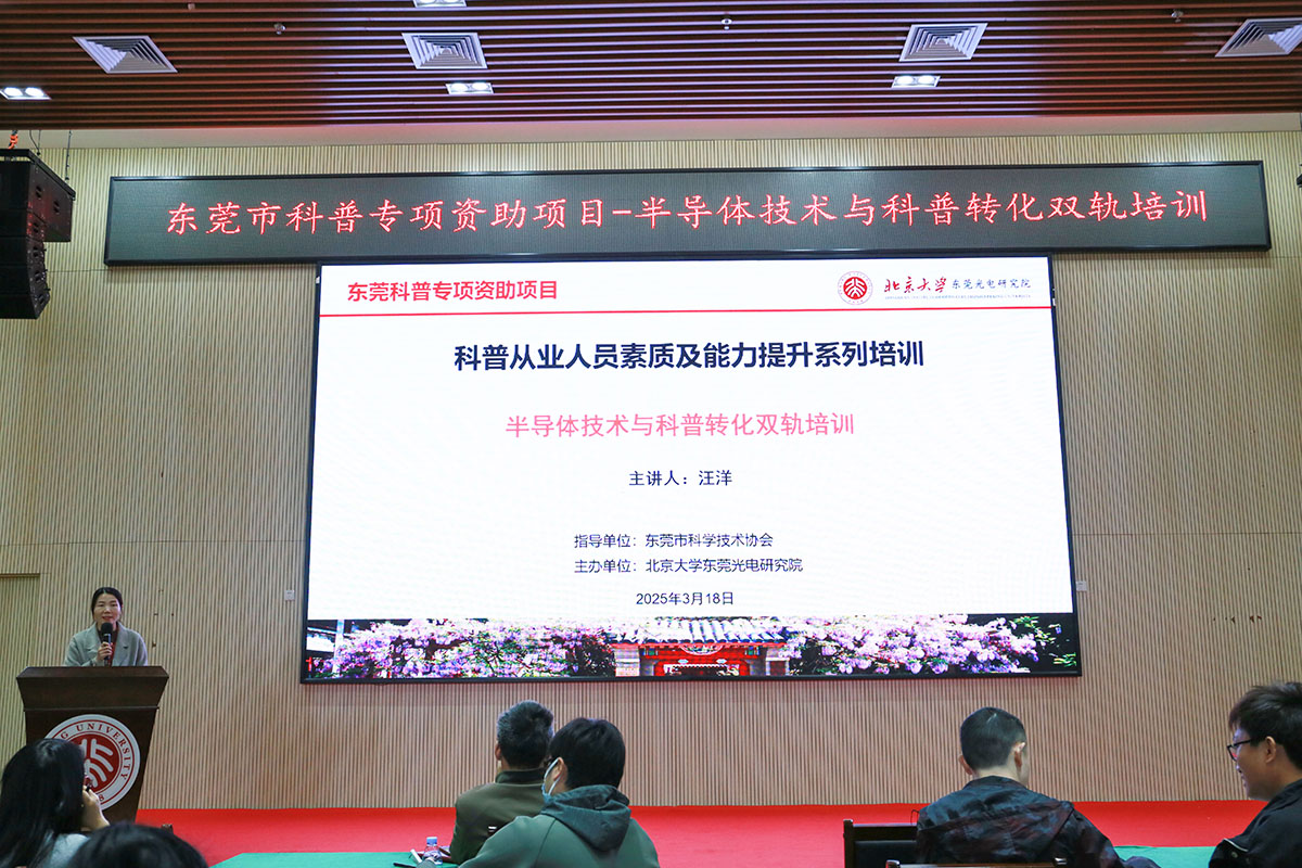 3 月 18 日下午,半导体技术与科普转化双轨培训在德信体育东莞光电研究院成功举办。本次活动由东莞市科学技术协会指导,作为东莞市科普专项资助项目 —— 科普从业人员素质及能力提升培训的重要组成部分,吸引了来自全市企事业单位的 30 余名科普教育工作者积极参与。活动旨在助力东莞市半导体产业的可持续发展与公众科学素养的提升,培养既懂半导体技术又具备科普转化能力的复合型人才。