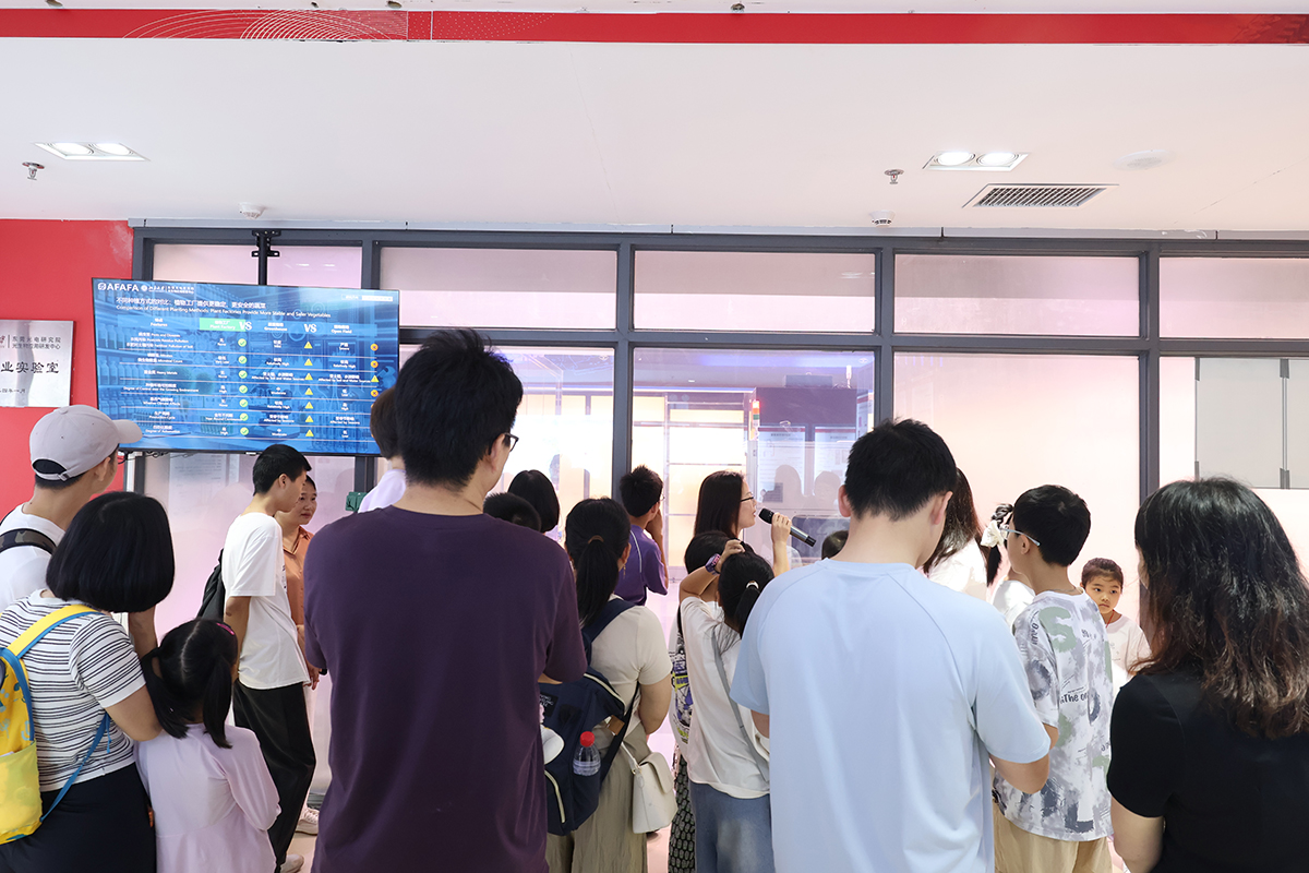 在智慧农业实验室,神奇的“植物工厂”成为孩子们最流连忘返的区域。通过现场演示,参与者直观了解到 LED 特定光谱技术在精准调控蔬菜生长周期、提升作物品质方面的应用,以及人工智能系统在环境监测、水肥管理中的智能运作。无土栽培、人工光照条件下生长繁茂的绿色植株,生动展示了现代农业科技的高效与可持续性。